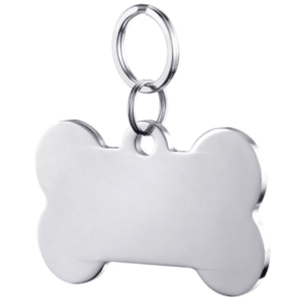 Placa de identidad para mascota en acero con forma de hueso color plateado y otros colores 40*23 mm | 50*28 mm